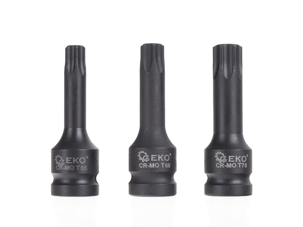 Sada rázových kľúčov Torx z vysokokvalitnej chróm-molybdénovej ocele (Cr-Mo) vo veľkostiach T20-T70 a 1/2"