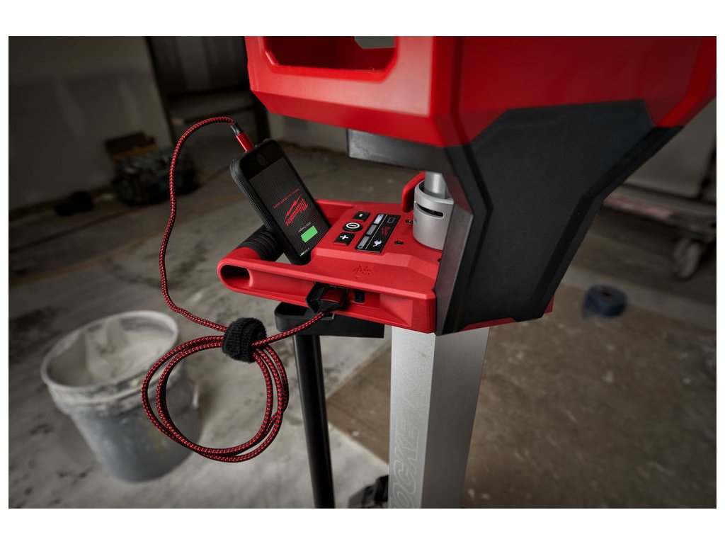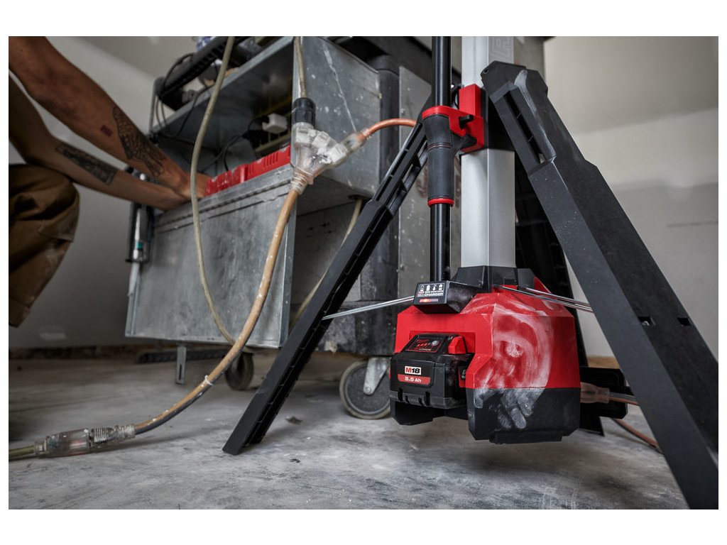 Veľmi výkonné a praktické svietidlo na stojane s možnosťou napájania z batérie alebo elektrickej siete. Je ideálny na osvetlenie pracovného priestoru v autoservise, dielni, na stavbách, ale aj pri záhradných akciách, kempovaní a podobných príležitostiach. Má vstavanú nabíjačku pre akumulátory M18 a USB port na nabíjanie napr. telefónov atď.