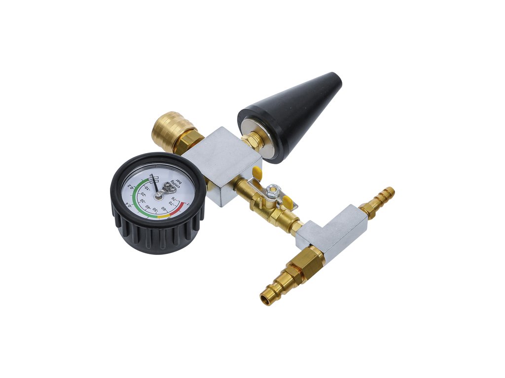 Kužeľový adaptér s manometrom pre tester a plničku chladenia, priemer 15-44 mm - BGS technic 1773-3
