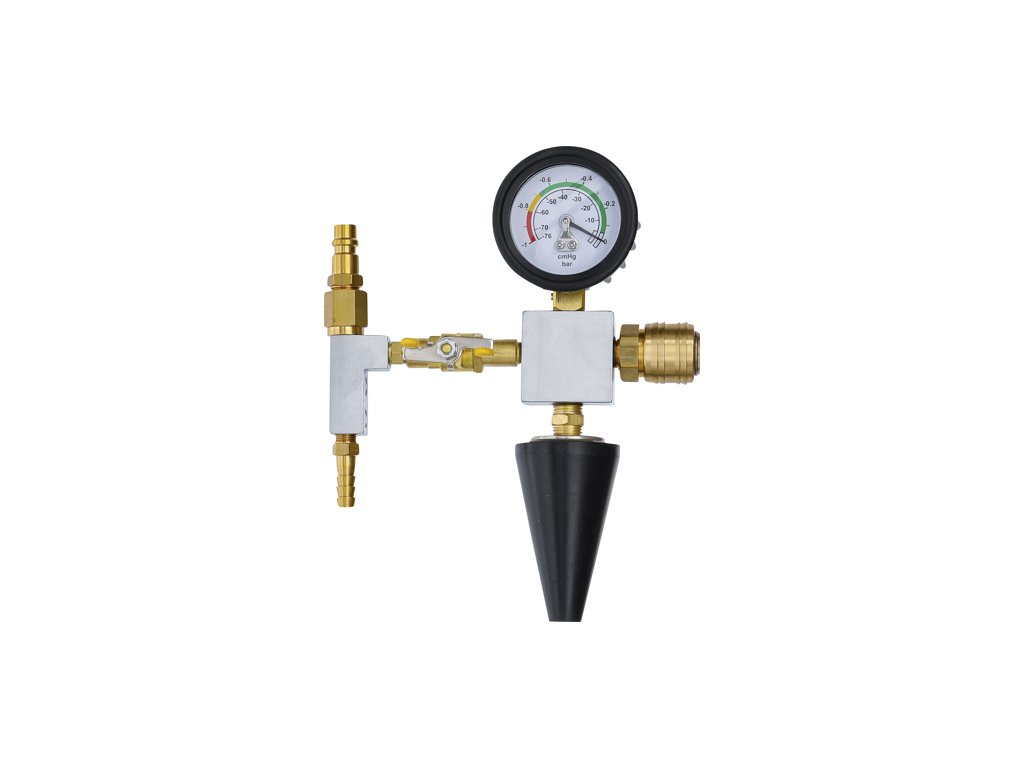 Používa sa na pripojenie testera k chladiacej sústave. Tlakomer má farebne rozlíšenú stupnicu (zelená – tlak je v norme; žltá – tlak sa vymyká normám; červená – tlak je výrazne mimo normu). Pre odolnosť proti nárazom je vybavený gumovou ochranou.