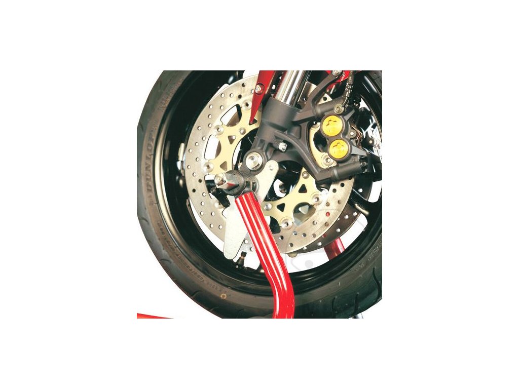 Špeciálny adaptér, ktorý vidlicu stroje uchytí zo spodnej a zadnej strany (viď foto), uložený v stojane otočným spôsobom. Motorku je vďaka tomu možné veľmi rýchlo a ľahko zdvihnúť.