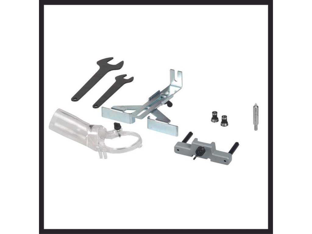 Súčasťou je paralelný doraz, kompasový hrot a nástroj, ako aj sací adaptér vhodný pre mokro-suché vysávače Einhell.