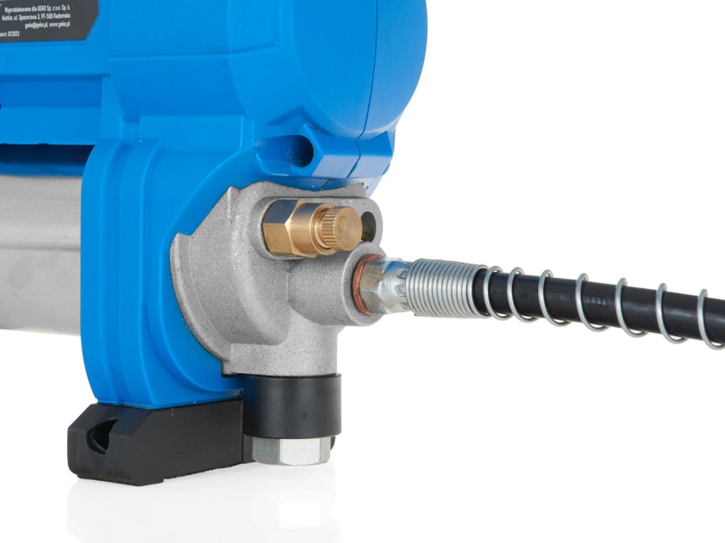 Bezšnúrová mazacia pištoľ vybavená modernými funkciami na efektívne a pohodlné mazanie v priemyselných a dielenských podmienkach.