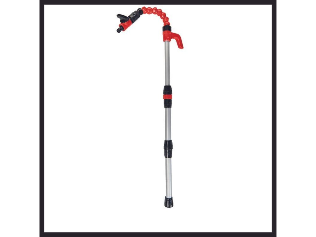Výkonný motor vytvára dopravný tlak viac ako 2 bary, takže spoľahlivo poslúži na prevádzku postrekovačov trávnika alebo hadíc. Teleskopická predlžovacia trubica s držiakom a uzatváracím kohútom na umiestnenie záhradnej hadice podľa individuálnych požiadaviek je ľahko nastaviteľná. Samostatná skrinka batérie odolná proti striekajúcej vode so závesným zariadením a možnosťou montáže na stenu je vybavená praktickým držiakom na uloženie kábla na kryte. Kryt čerpadla a skrinka batérie sú vyrobené z plastu odolného proti nárazom.