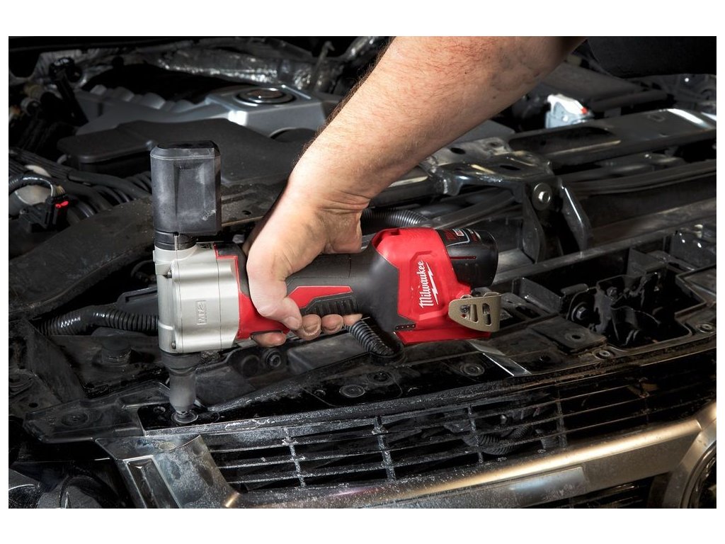 Veľmi praktická aku nitovačka pre univerzálne použitie v autoservise, dielni, priemysle, pri stavebných montážach a pod. Vďaka batériovému napájaniu je možné využiť napr. aj pri vonkajších prácach. Nízka váha a ergonomicky tvarované madlo zaručujú pohodlnú prácu.