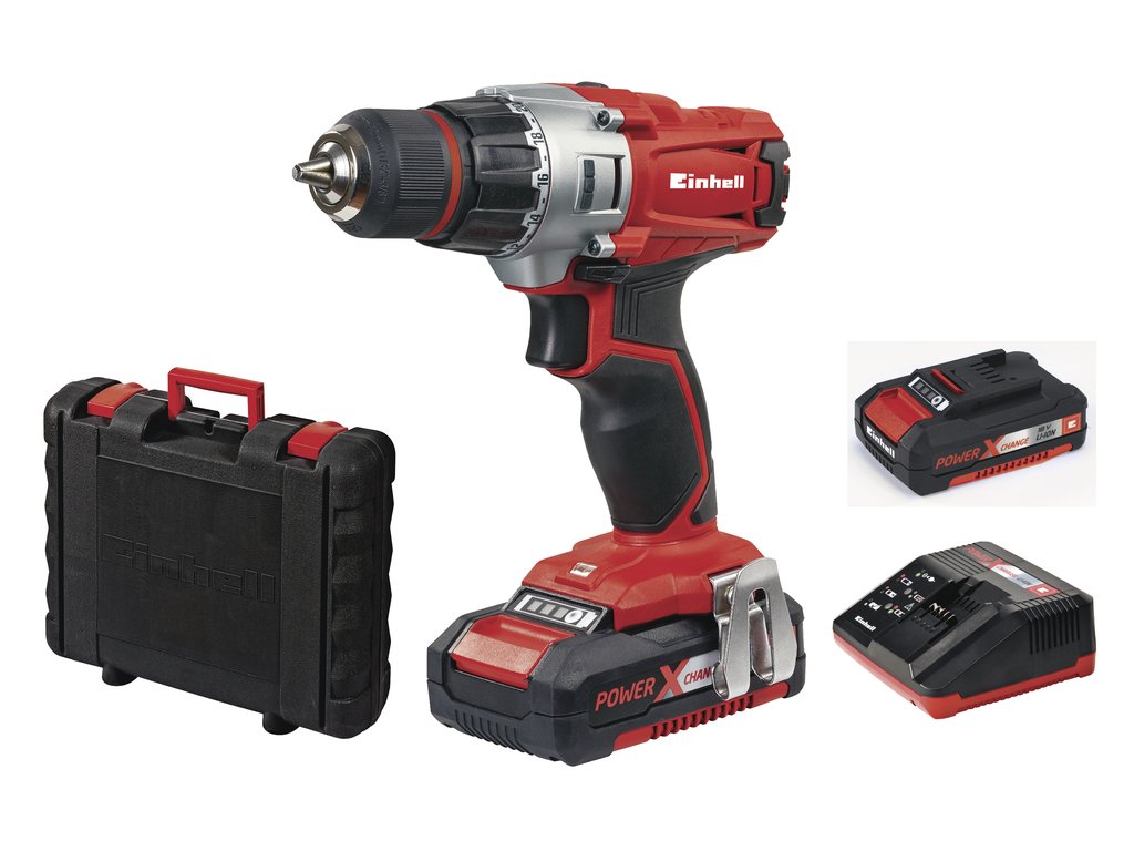 TE-CD 18 polovica Li Driver Kit je silný, robustný a univerzálny vŕtací akuskrutkovač určený pre najnáročnejších skrutkovanie a vŕtanie práce okolo domu, dielňu a garáž. Robustná, odolná 2-rýchlostná kovová prevodovka a výkonný motor dokážu generovať vysoký krútiaci moment, ktorý poskytuje dostatok energie pre skrutkovanie a vysokorýchlostné vŕtanie. Vŕtačka TE-CD 18/2 Li Kit má jednoručné skľučovadlo s funkciou rýchleho zastavenia a automatickú aretáciu vretena, ktoré umožňujú užívateľovi veľmi rýchlo meniť vrtáky bez použitia náradia. Jemné nastavenie rýchlosti pomáha udržiavať kontrolu pri jemnom vŕtaní. Spojka potom zabraňuje nadmernému dotiahnutie skrutiek. S vŕtačkou bude radosť pracovať aj vďaka ergonomickej mäkčená rukoväti a praktickej spone na opasok. Jasné LED svetlo osvetľuje pracovnú plochu. Li Kit TE-CD 18/2 je členom Power X-Change rodiny produktov. V balení nájdete dve dobíjacie batérie 1.5Ah a rýchlonabíjačku v praktickom kufríku.