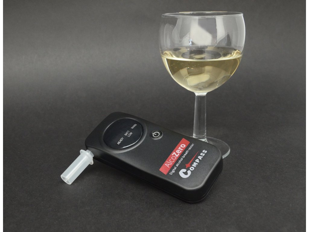 Alkoholtester, tzv. breathalyzer, pre orientačnú dychovú skúšku na alkohol, s elektrochemickým senzorom, batériový pohon – COMPASS AlcoZero
