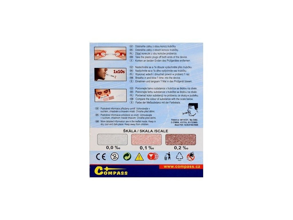 Alkohol tester - detekčný trubička, jednorazový - COMPASS