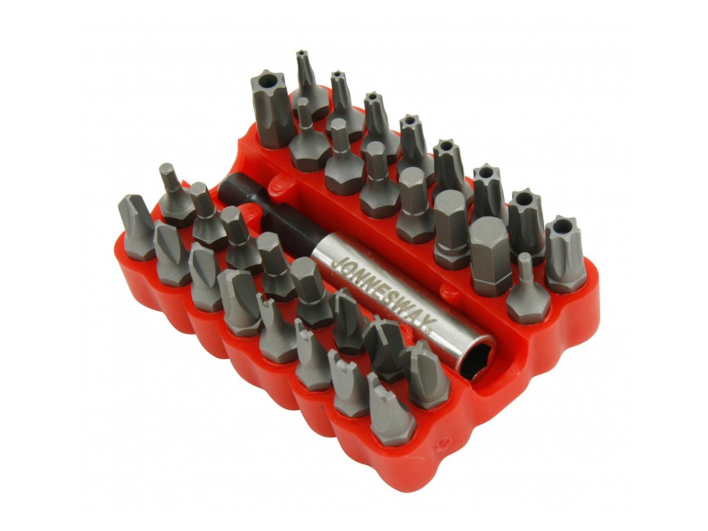 Bity špeciálnych profilov v metrických aj palcových rozmeroch, s magnetickým držiakom, sada 33 dielov v plastovej kazetke - JONNESWAY S29H2133S