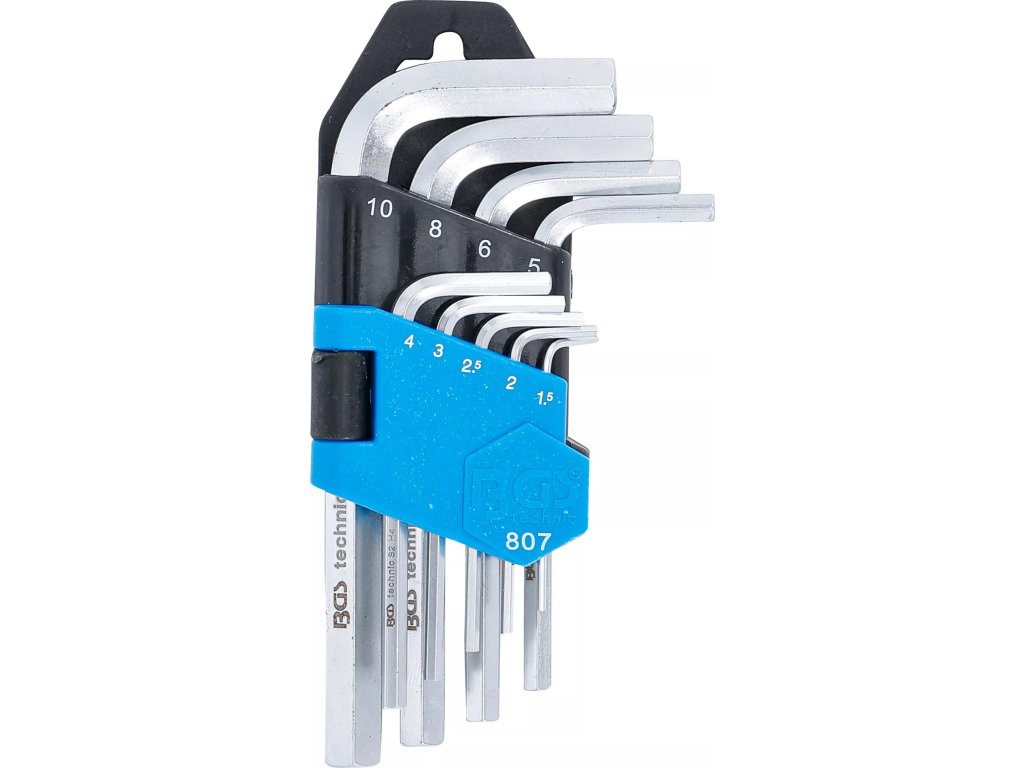 Sada kľúčov na imbus, rozmery H1,5 až H10, extra krátke, 9 kusov v plastovom puzdre - BGS technic 807
