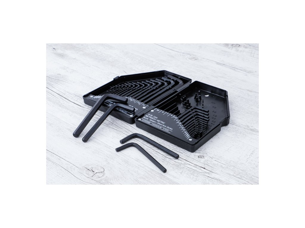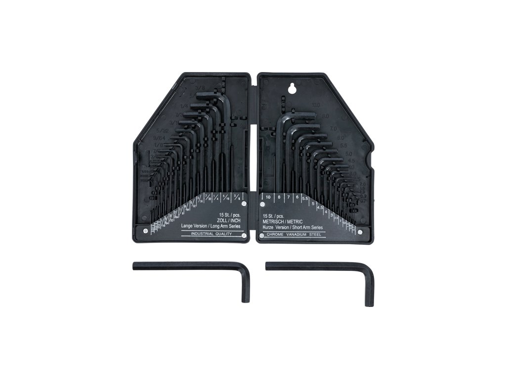 Tzv. L-kové kľúče so šesťhranným imbusovým profilom vo všetkých bežných veľkostiach. Ideálne pre garáž, dielňu a domácnosť. Súprava obsahuje náradie v metrických aj imperiálnych (palcových) rozmeroch, takže je skutočne všestranná.