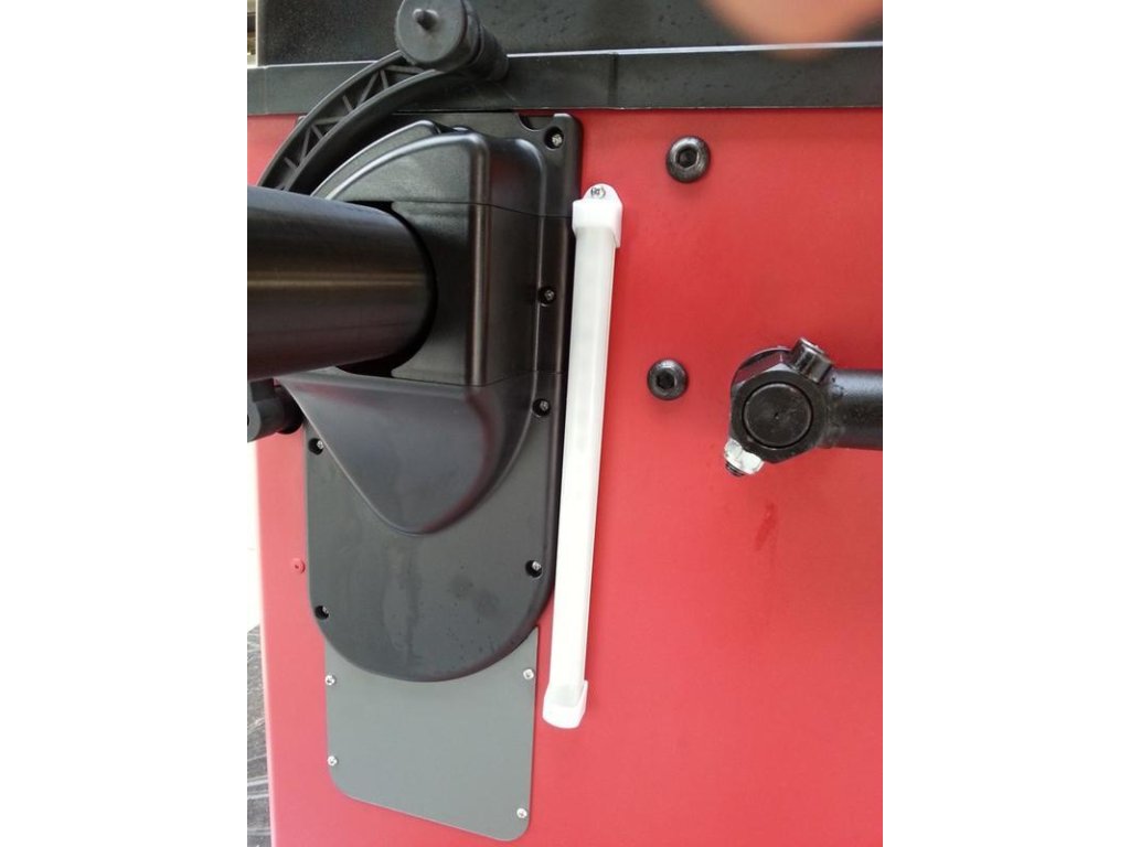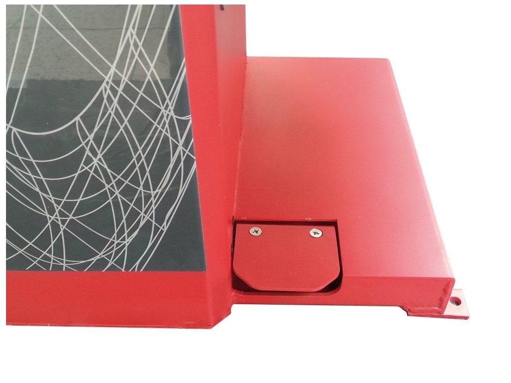 Bezpečnosť pri práci zaisťuje pevný kryt kolesa a tiež možnosť rýchleho zastavenia stroja tlačidlom STOP v prípade núdze. Pracovný komfort zvyšuje systém premyslených priehradok na vrchnej doske stroja, vďaka ktorým má mechanik neustále po ruke všetko potrebné (závažie, naklepávacie kliešte, atď.).