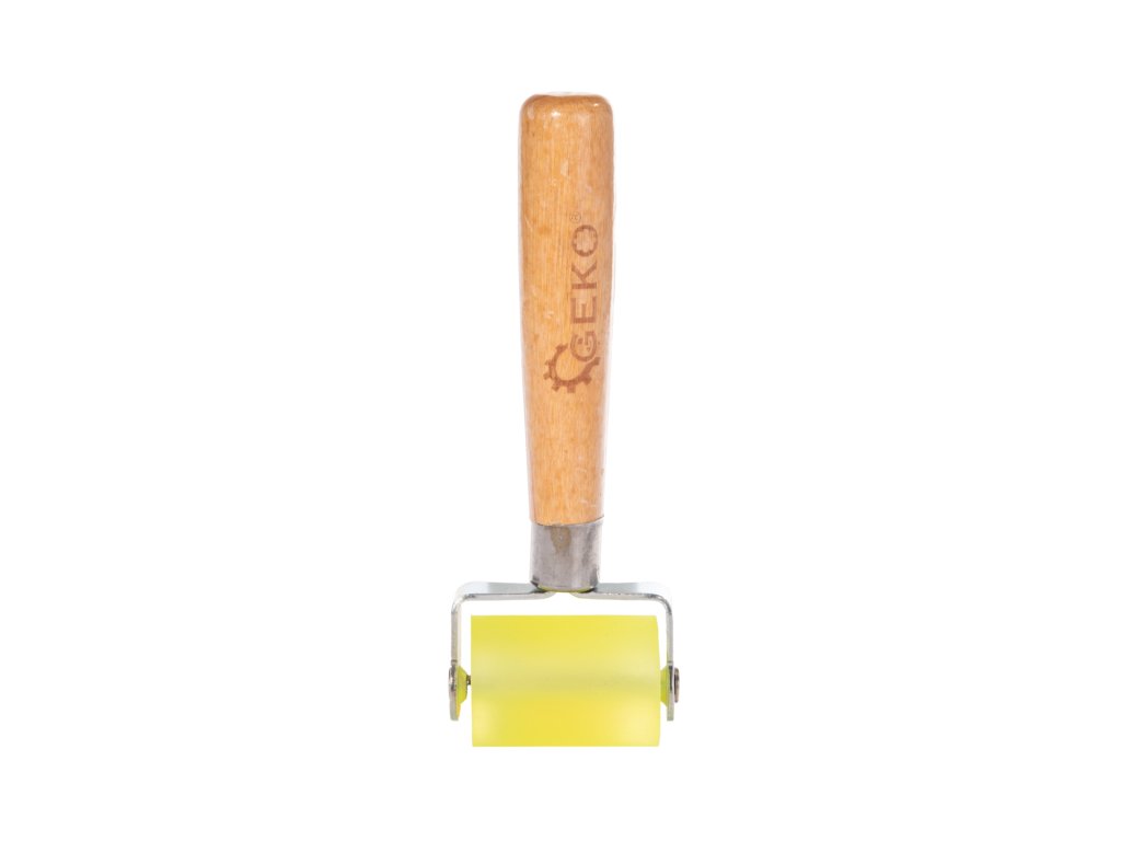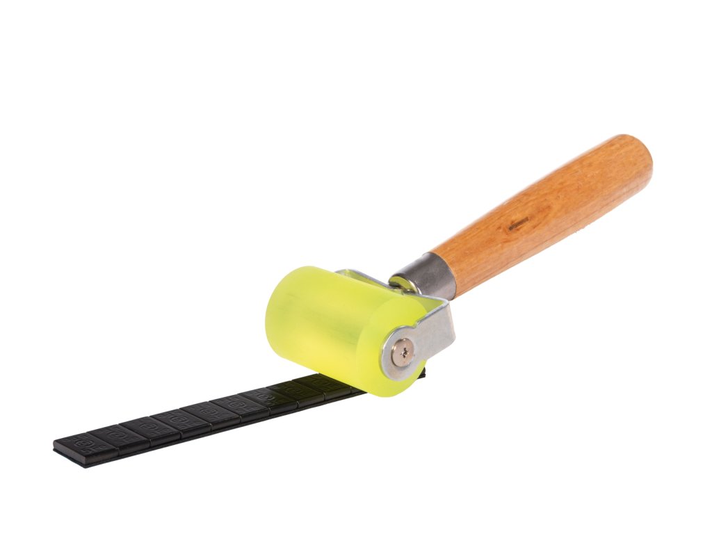 Konštrukcia tohto výrobku je založená na pevnej drevenej rukoväti, ktorá zabezpečuje stabilitu a pohodlie používateľa. Samotný valček je vyrobený z gumy, materiálu s vynikajúcou odolnosťou a priľnavými vlastnosťami, čo zabezpečuje účinné lisovanie lepených závaží.