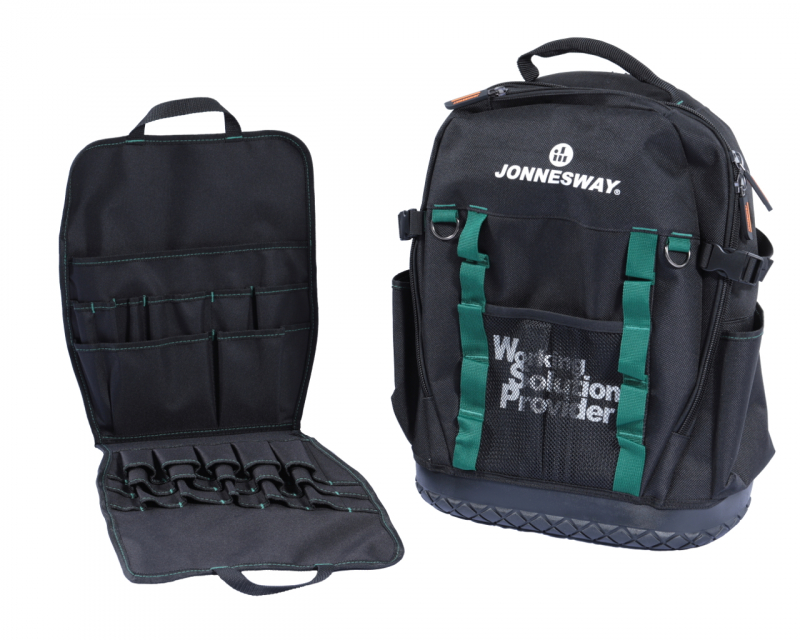 Pracovný batoh na prepravu náradia a vybavenia, textilný, s vyberacou vložkou s rukoväťami – JONNESWAY JW-BACKPACK