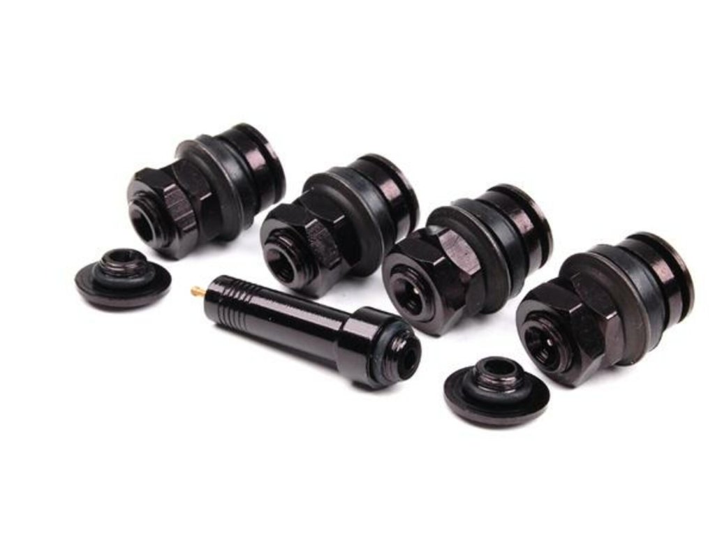 Bezdušové ventily skryté, kovové čierne, pre otvor 11.3 mm, sada 4 ks s adaptérom