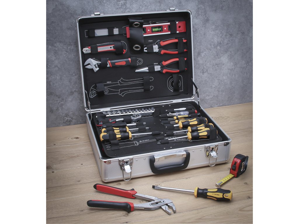 BGS Technic BGS 2204 Hliníkový kufor na náradie s náradím Kraftmann. Súprava 129 dielov pre zámočníkov
