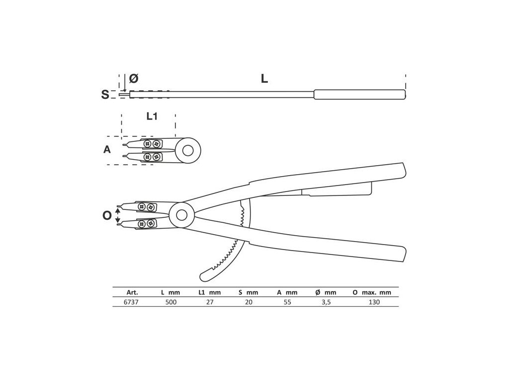BGS Technic BGS 6737 Kliešte na rozperné krúžky rovné na vnútorné rozperné krúžky 500 mm