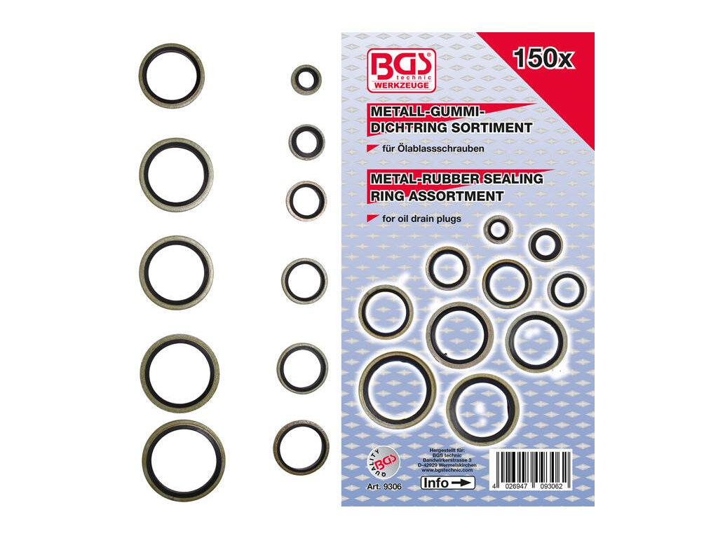 BGS Technic BGS 9306 Tesniace krúžky - kovové s gumovou tesniacou objímkou (sada 150 dielov)