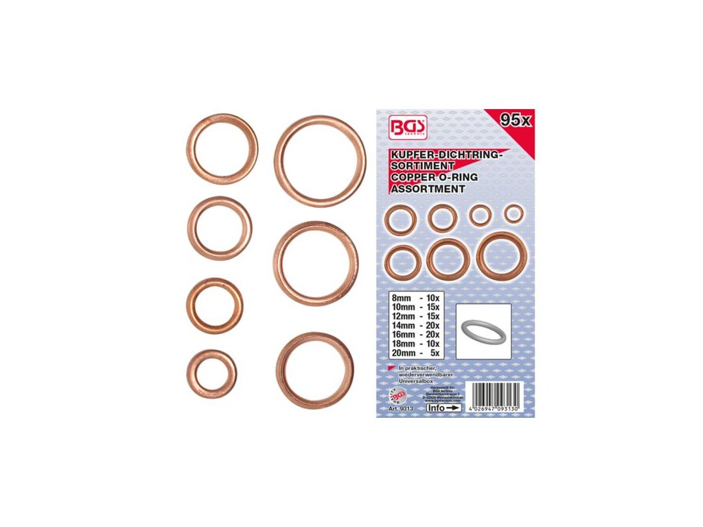 BGS Technic BGS 9313 Tesniace medené O-krúžky, priemer 6,0 ÷ 20,0 mm (sada 95 dielov)