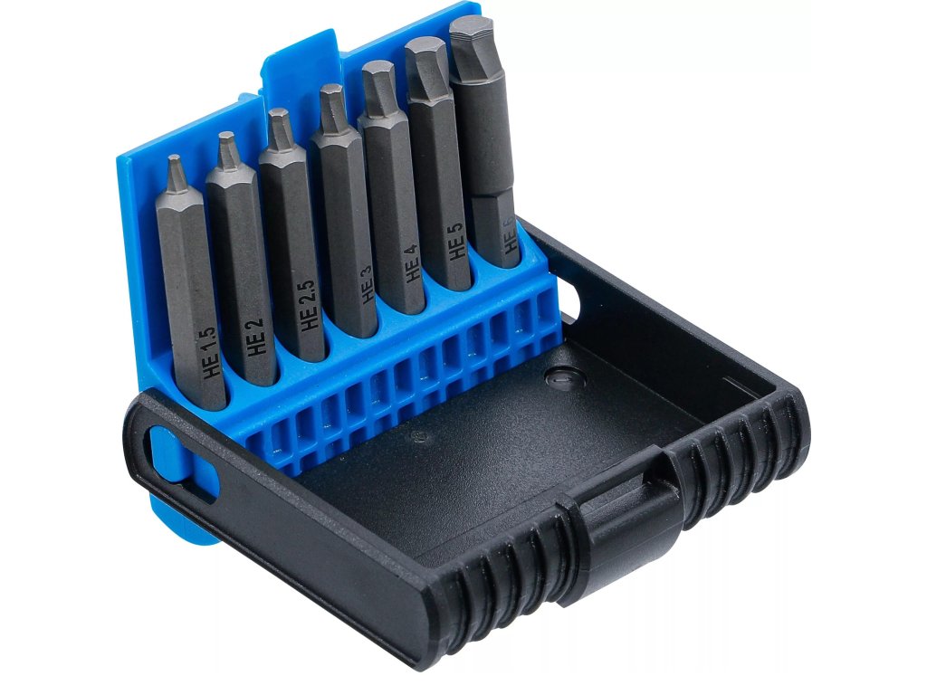 Špeciálne bity – vyťahovače poškodených skrutiek Imbus (6hran), vodiaci 6hran 1/4“, sada 7 dielov v plastovej krabičke – BGS technic 5289