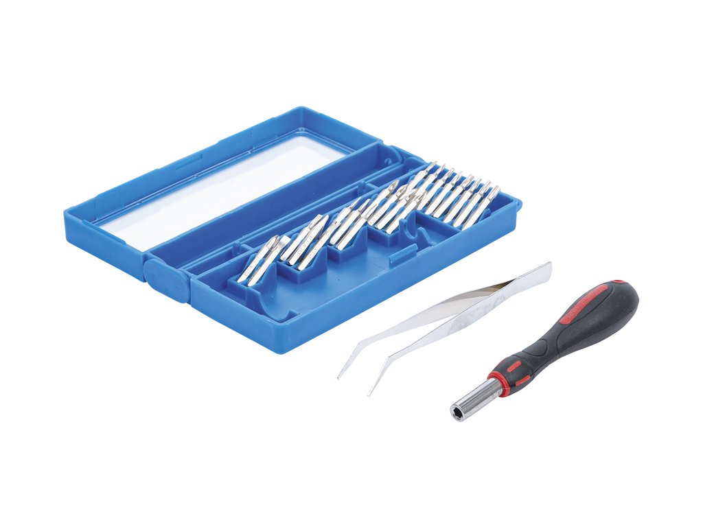 Bity MICRO pre jemnú mechaniku, s rukoväťou a pinzetou, sada 23 kusov