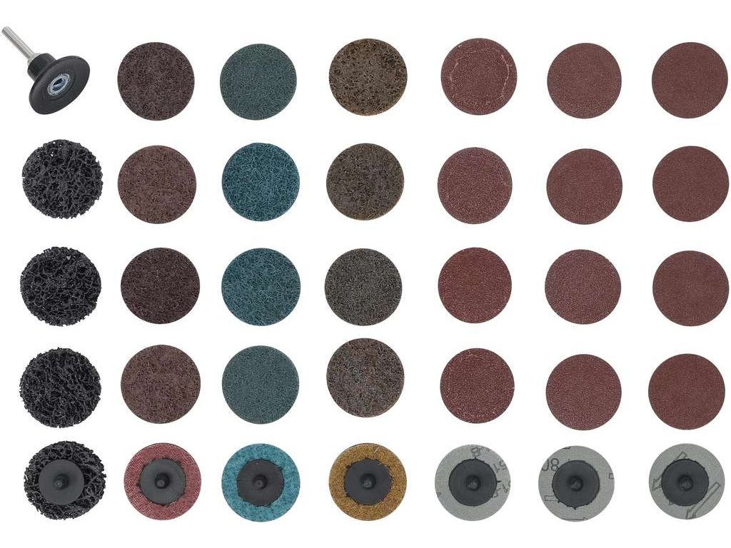 Súprava brúsnych kotúčov s priemerom 50 mm je určená na brúsenie farby, zvarov, hrdze, náterov, nečistôt atď.