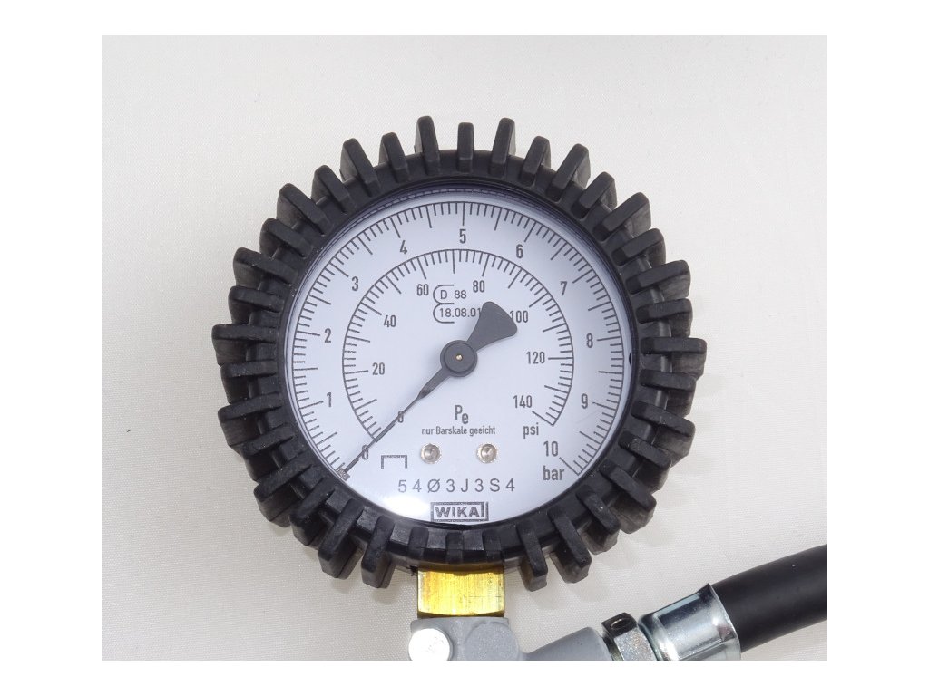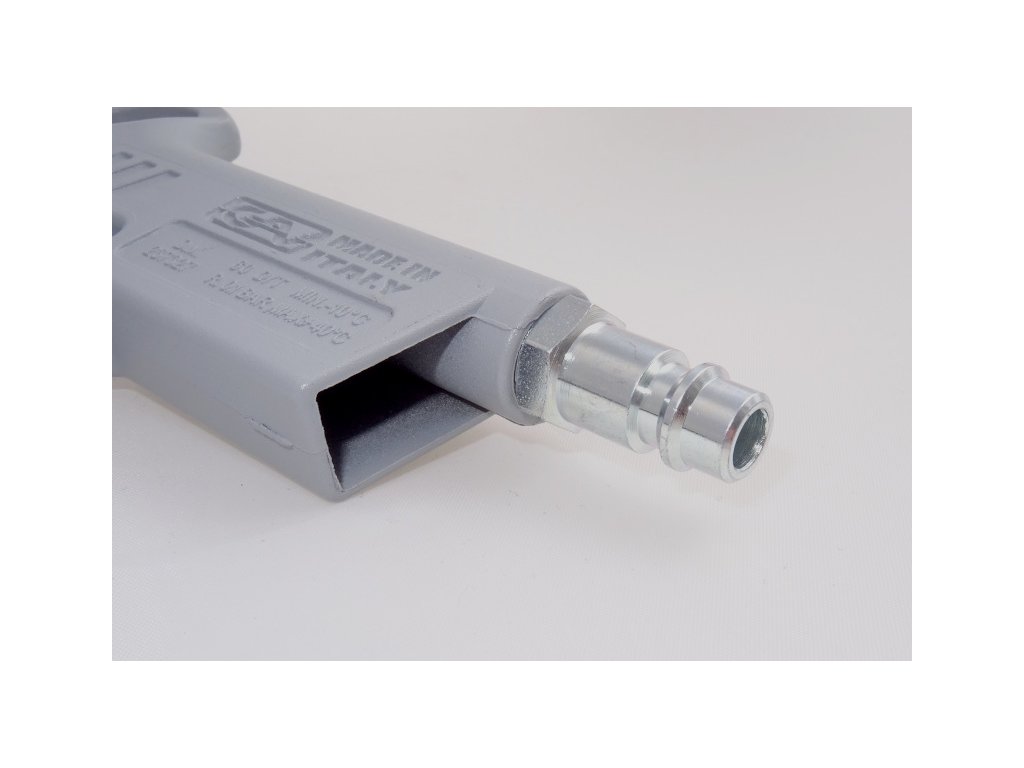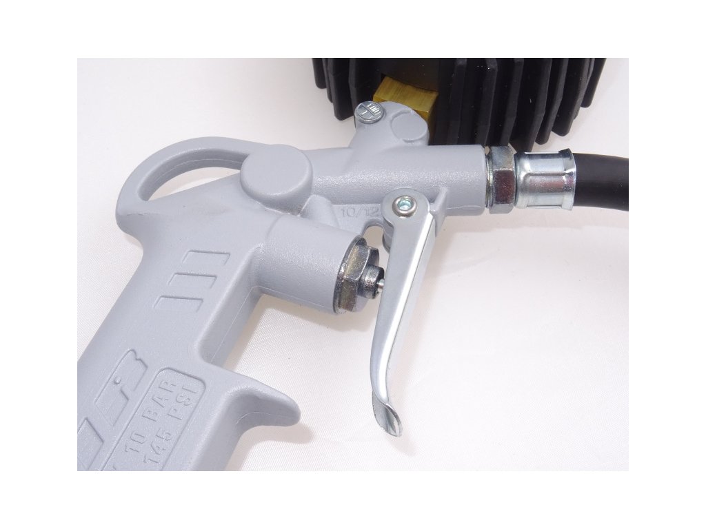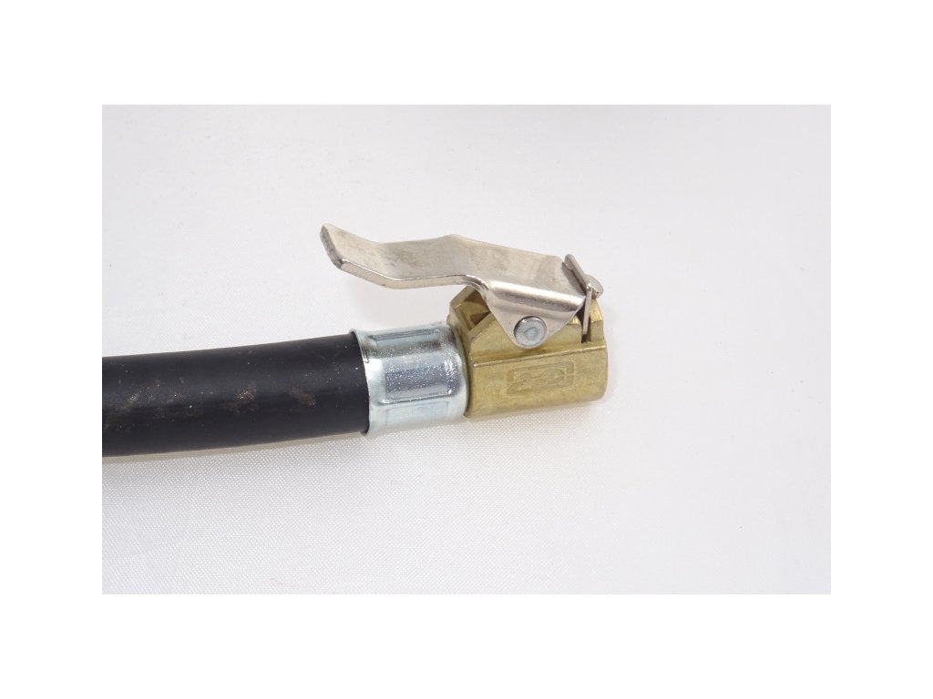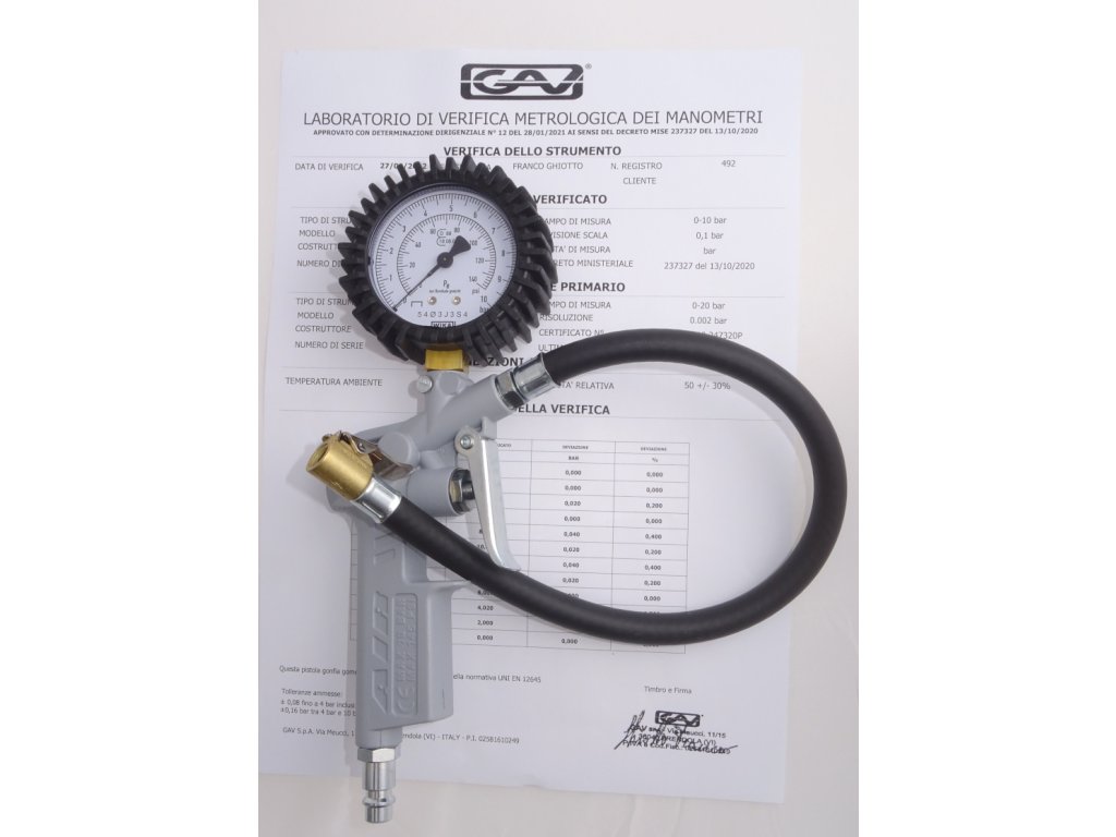 Celokovový hustič od kvalitného talianskeho výrobcu GAV s certifikáciou 86 /217/EEC je vybavený manometrom odstupňovaným po 0,1 bar, ktorého súčasťou je aj zobrazenie tlaku v hodnote PSI. Manometer je chránený gumovým obalom a pištoľ disponuje očkom na zavesenie. Súčasťou 40 cm dlhej hadice je koncovka s poistkou, vďaka ktorej nie je nutné hadicu na ventilčeku pridržiavať.