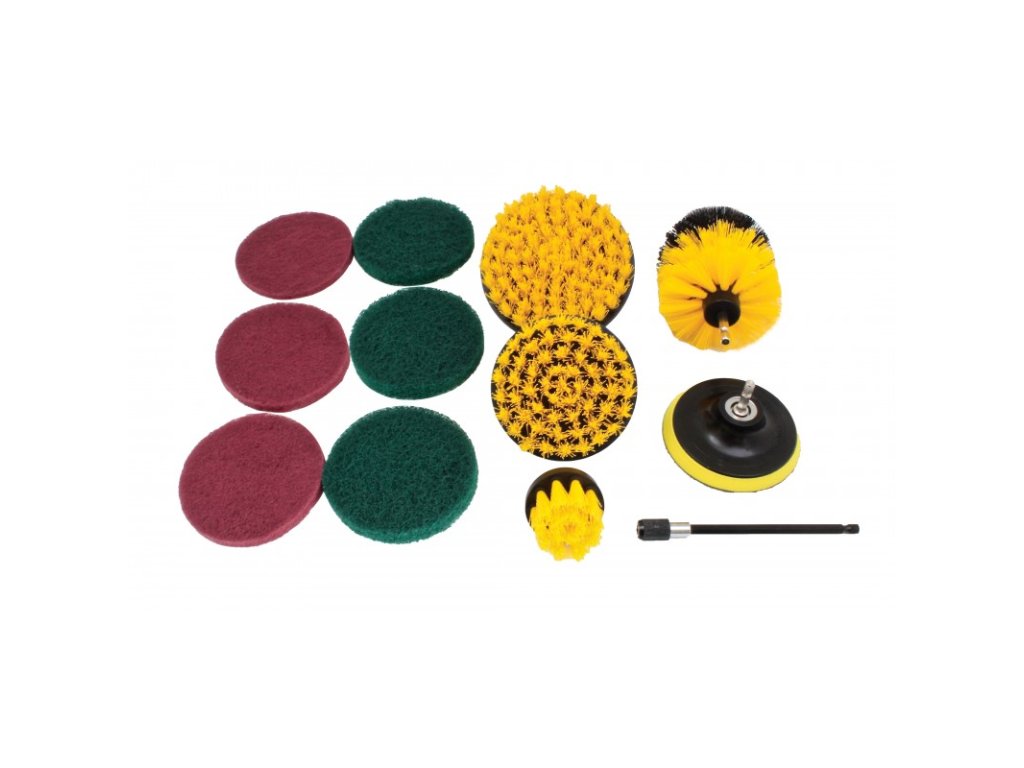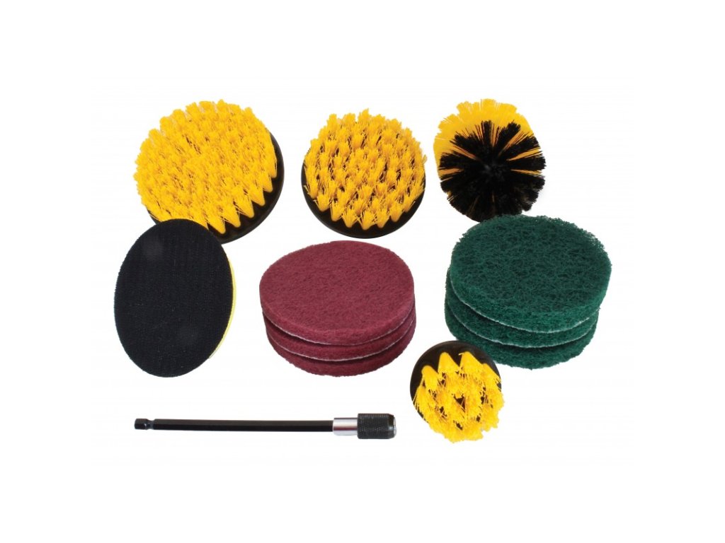 Univerzálne pomôcky na čistenie. Vďaka rôznym tvarom je možné kefky použiť aj na veľmi zle prístupné miesta (kúty, rohy a pod.). Ľahko sa upevní na vŕtačku pomocou nástavca.