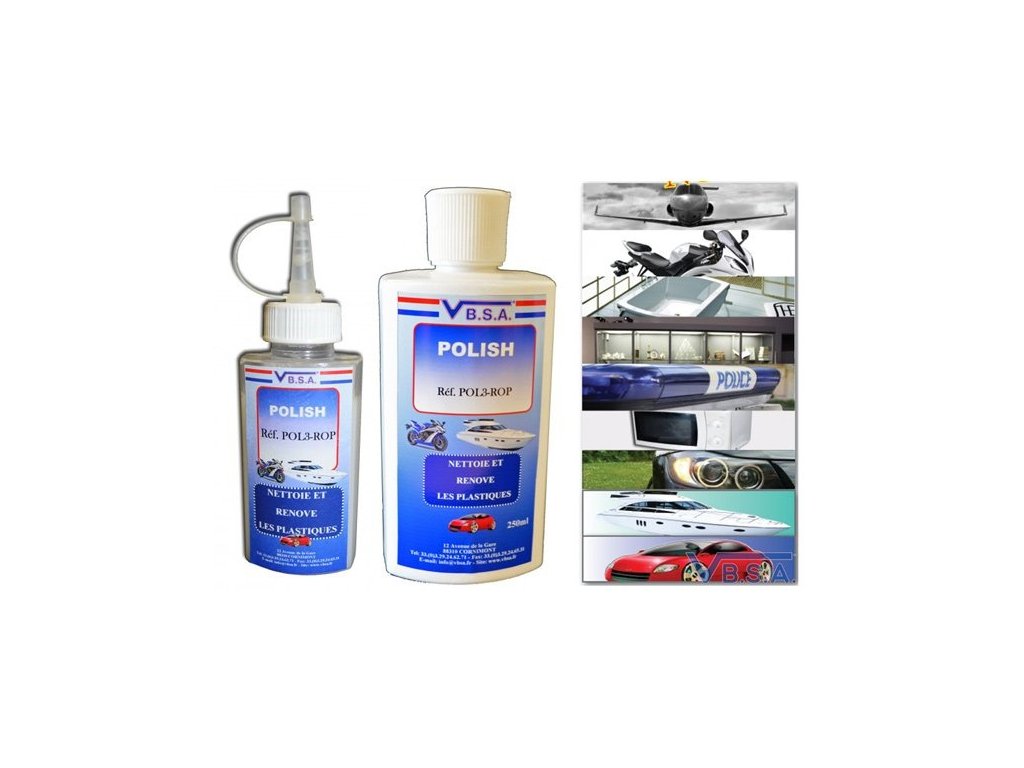 - pre perfektné odstránenie všetkých škrabancov, vyčistenie a vyleštenie plastov je nutné podľa konkrétnych podmienok použiť ešte aj prípravky VBSA POL1-ROP (pre odstránenie hrubších škrabancov a čistenie narušených povrchov plastov) a VBSA POL2-ROP (pre odstránenie menších škrabancov a čistenie narušených povrchov plastov)