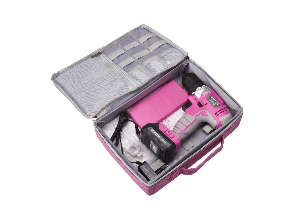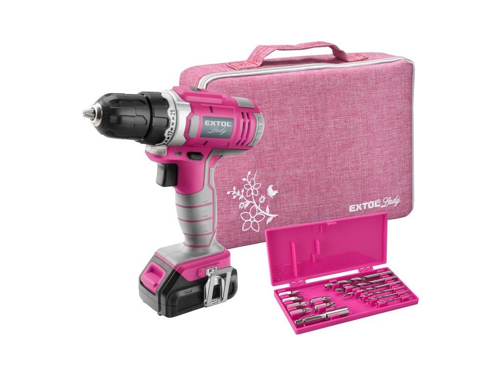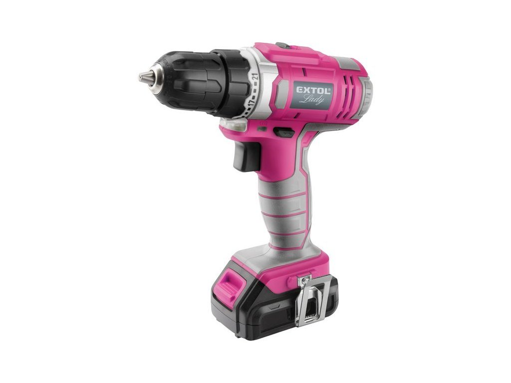 Lady AKU vŕtací skrutkovač, 12V, 1300mAh, svietidlo, ružový - EXTOL LADY