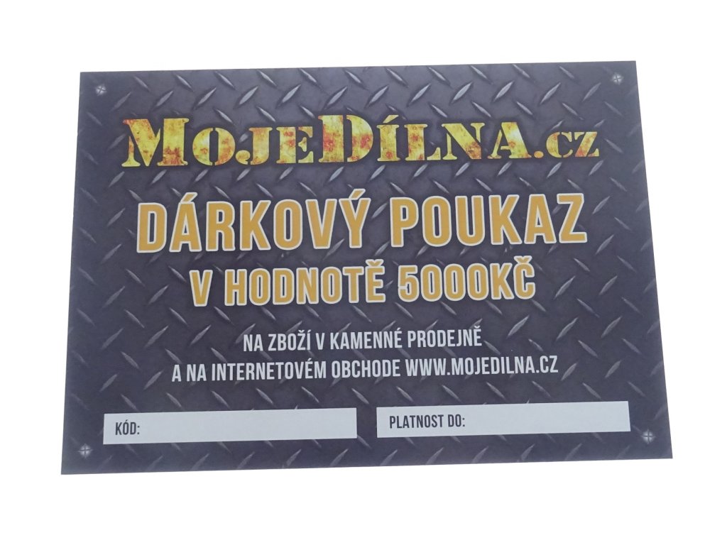 Darčekový poukaz v hodnote 5000 Sk na nákup tovaru v obchode MojeDílna.cz Platí pre nákup v e-shope aj kamennom obchode. Urobte svojim blízkym ozajstnú radosť a venujte im darček, ktorý skutočne využijú!