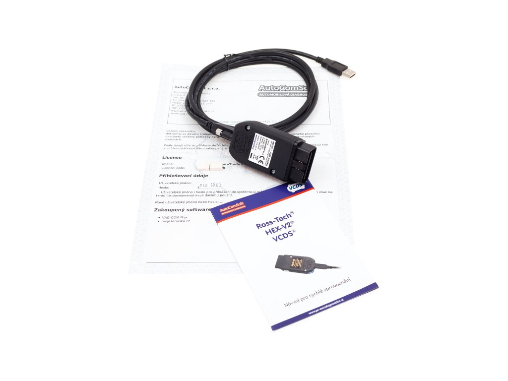 Súčasťou balenia je prepojovací kábel medzi PC a diagnostickú zásuvku vozidla HEX-CAN s integrovaným hardvérovým kľúčom (obsahuje originálne licenciu) a licenčné list, ktorý zaisťuje prístup k užívateľskému účtu s aktuálnymi verziami programov a prípadných budúcich aktualizácií. VAG COM podporuje KKL aj CAN diagnostiku takže umožňuje pripojenie aj k najnovším modelom vozidiel.