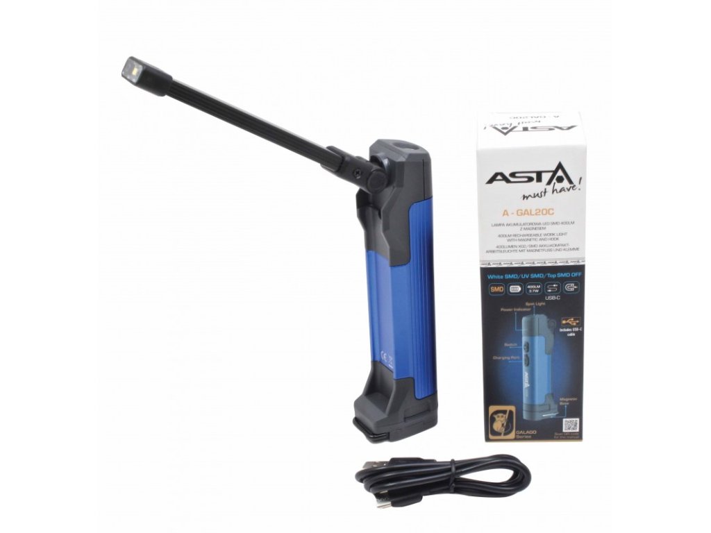 Svietidlo na montáž do oddielu, COB LED, 400 lm, skladacie, nabíjateľné, s magnetmi a háčikmi na zavesenie - ASTA A-GAL20C.