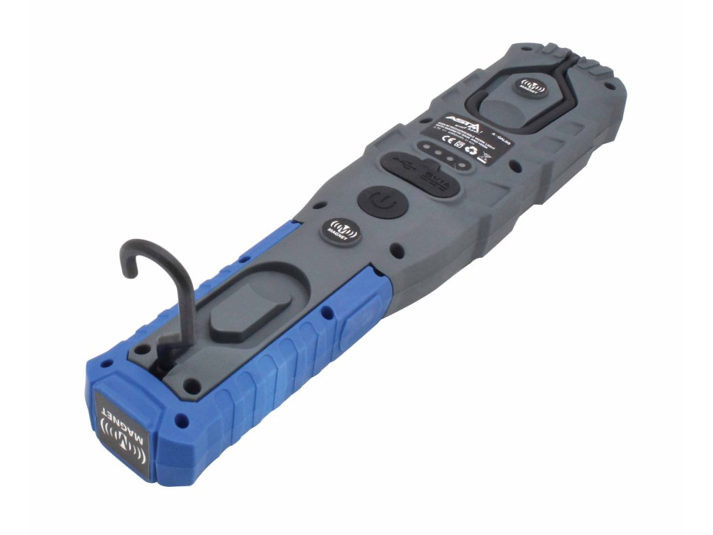 Dielenská montážna lampa, COB LED, 800 lm, dobíjateľná, s magnetmi a háčikmi - ASTA