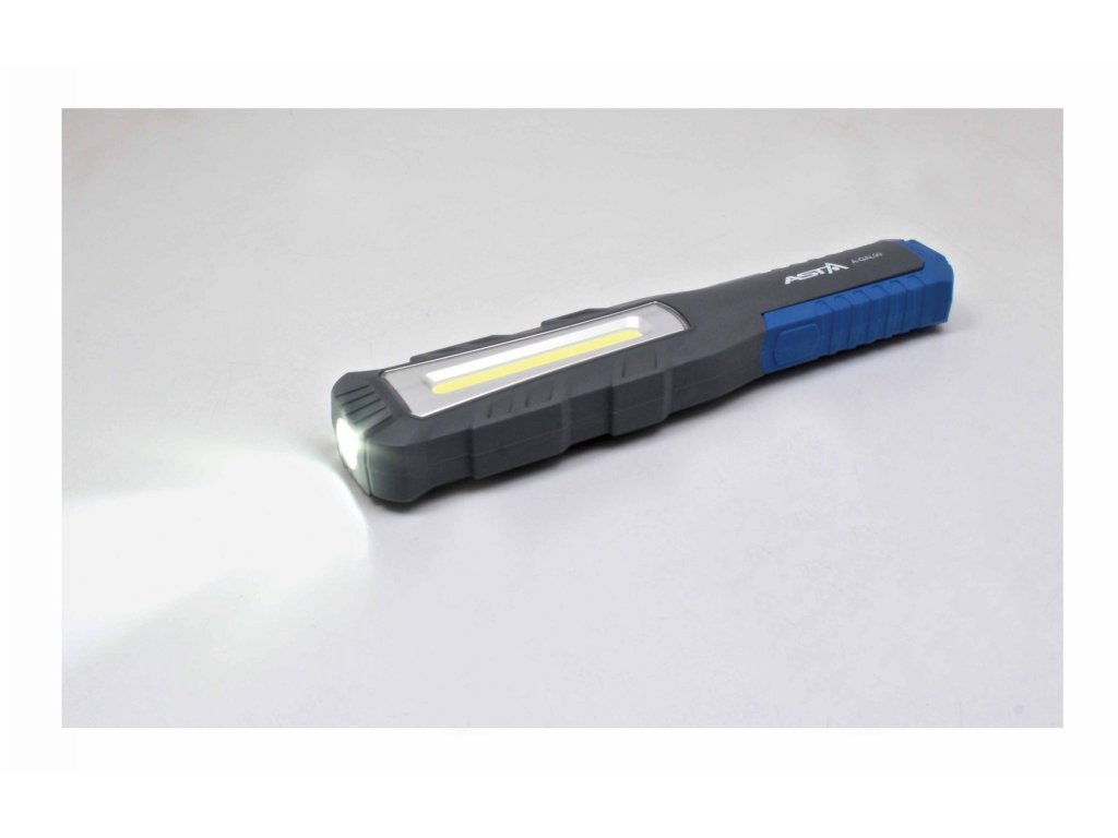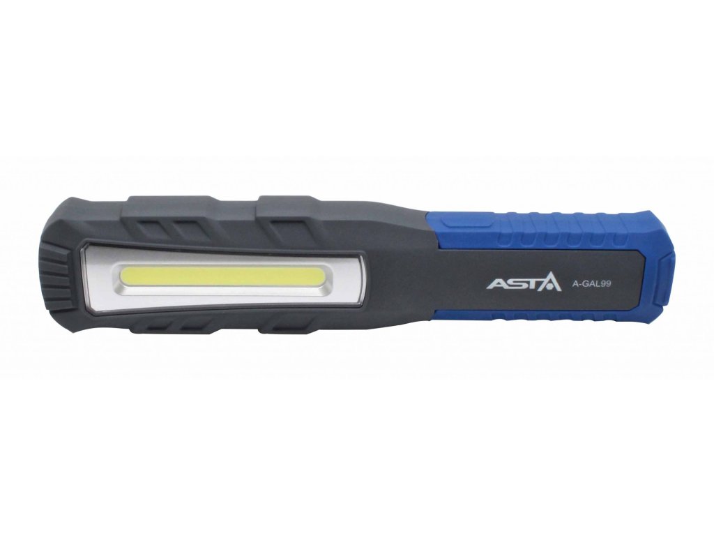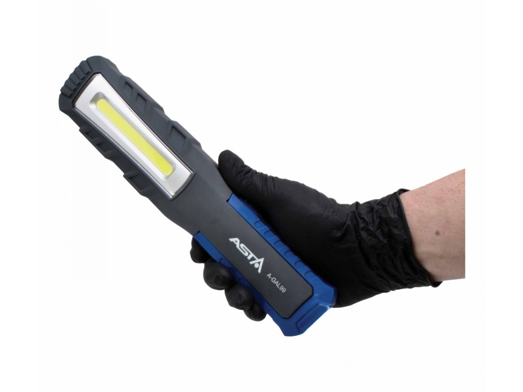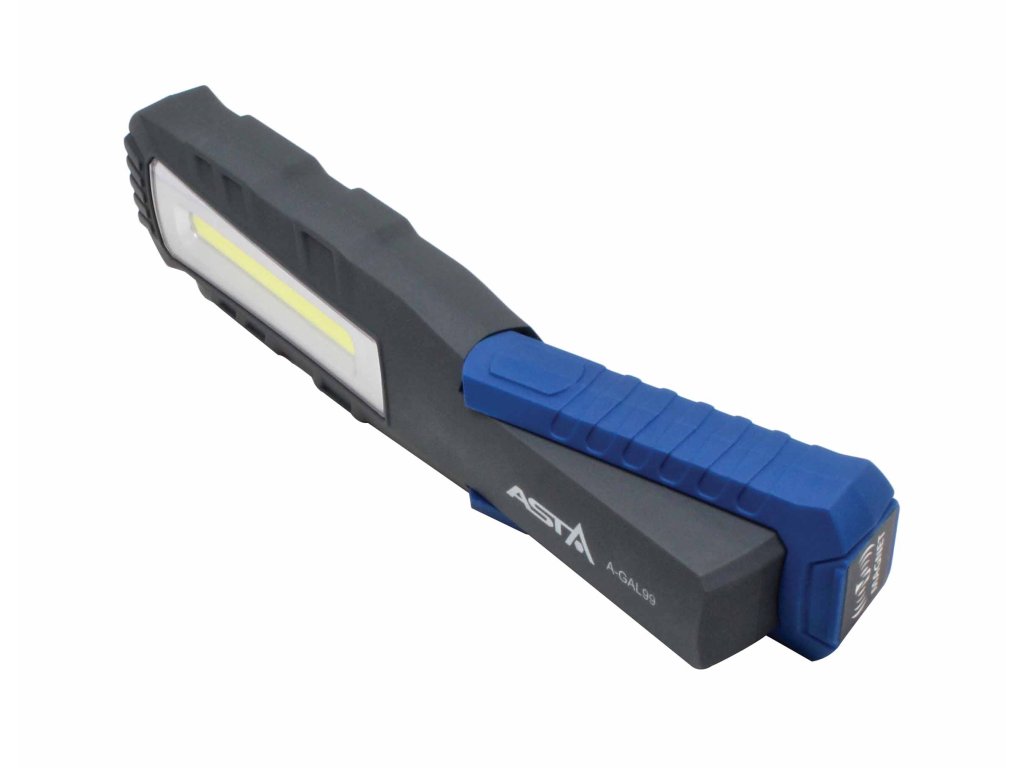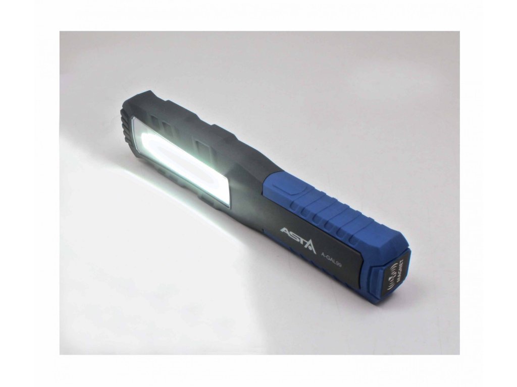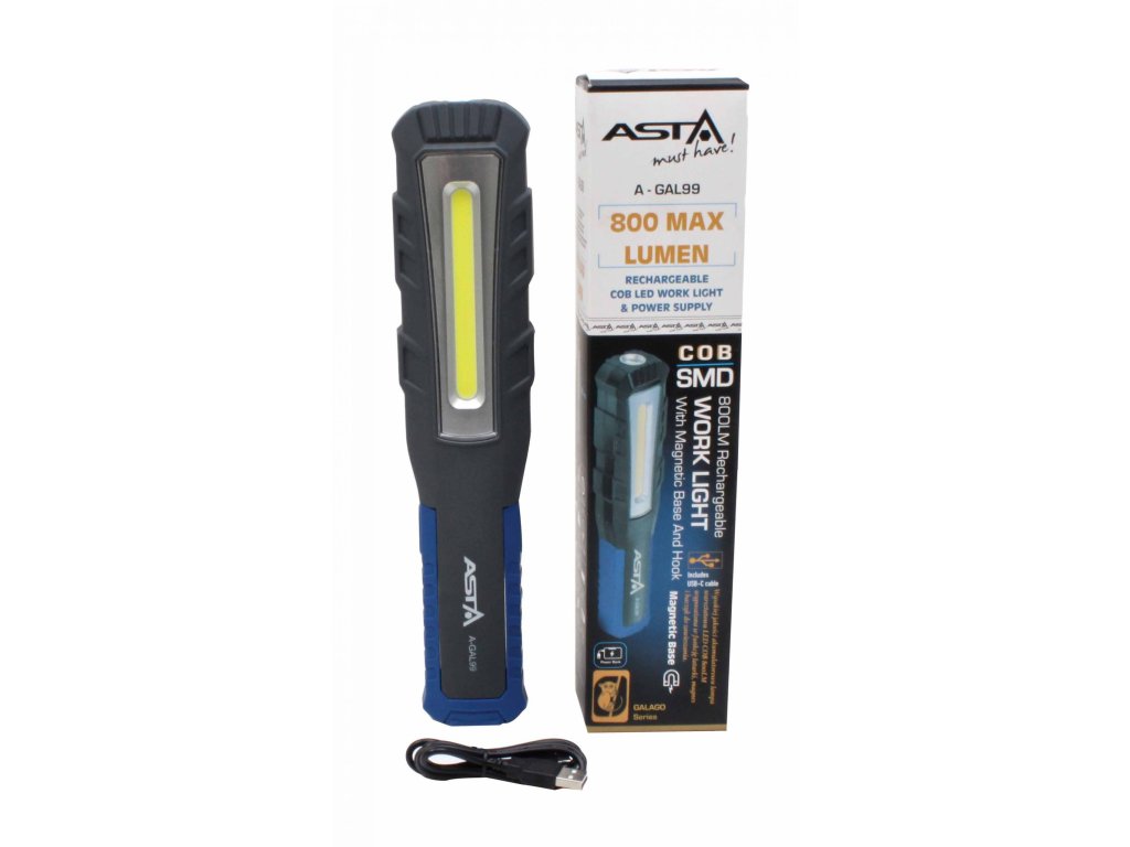 Dielna montážna lampa, COB LED, 800 lm, dobíjateľná, s magnetmi a háčikmi - ASTA A-GAL99