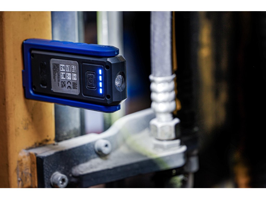 Vďaka modernej technológii LED COB dokonale osvetľuje pracovný priestor a navyše je energeticky úsporná. Úroveň nabitia batérie sa zobrazuje na indikátore na zadnej strane. Nabíjanie prebieha prostredníctvom kábla USB-C alebo indukčnej nabíjačky.