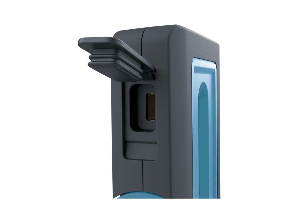 Odolná plastová konštrukcia s pogumovaným povrchom a silným integrovaným magnetom na spodnej strane.