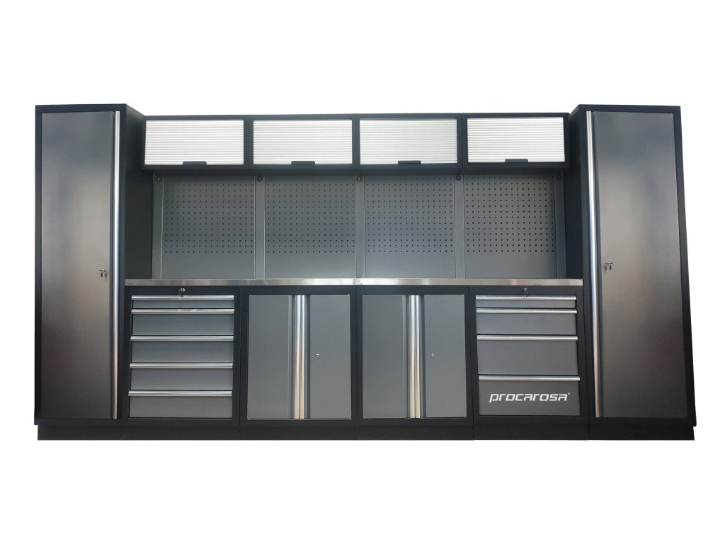 Procarosa PROFI PROFESSIONAL L-1 sa skladá z 21 dielov dielenského nábytku, a to: