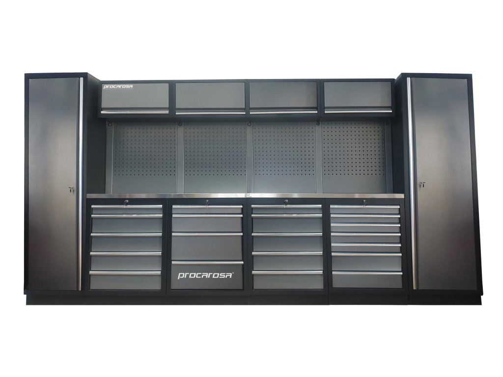 Zostava dielenského nábytku Procarosa PROFESSIONAL L-8 Pracovná doska: nerezová, Hmotnosť: