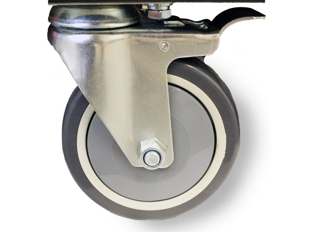 Vozík stojí na dvoch pevných a dvoch otočných kolieskach. Dielenský box je možné jednoducho zabrzdiť.