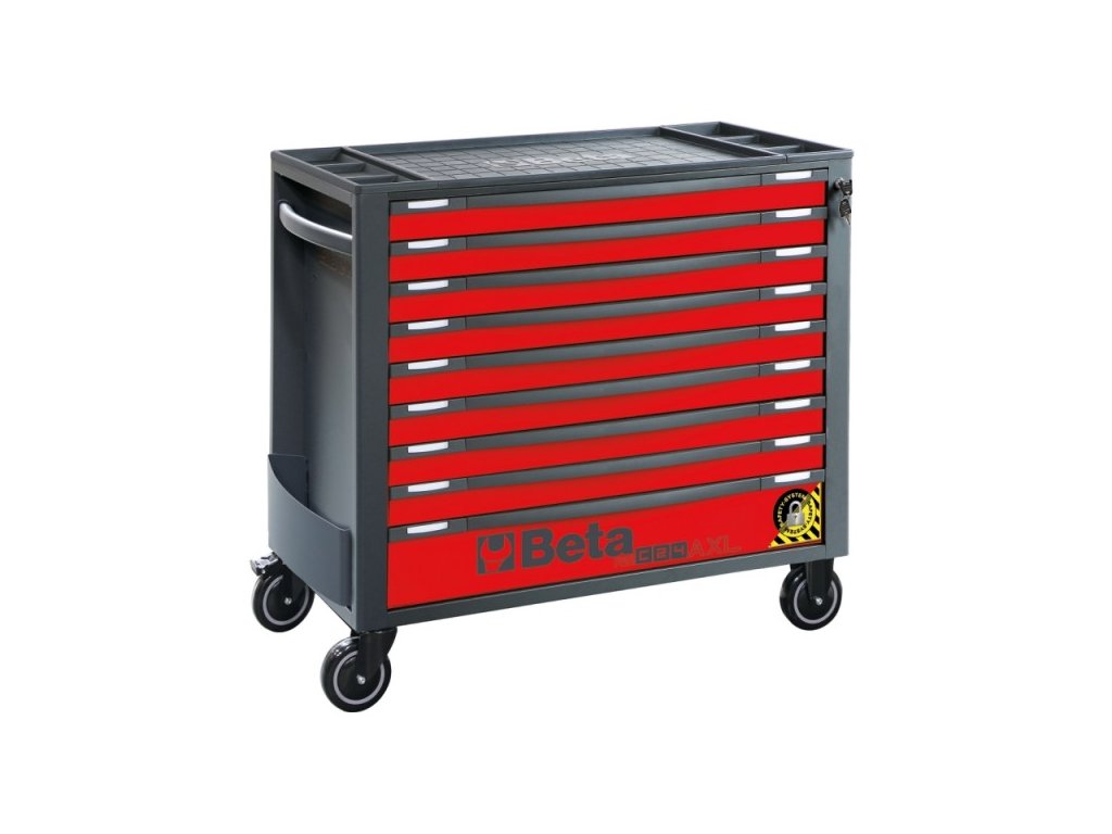 Dielenský vozík, dlhý, 9 zásuviek, systém proti prevráteniu, červený - Beta Tools