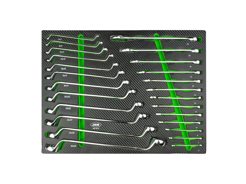 Ohnuté kľúče: 6x7, 8x9, 10x11, 12x13, 14x15, 16x17, 18x19, 20x22, 21x23, 24x27, 25x28, 30x32 mm