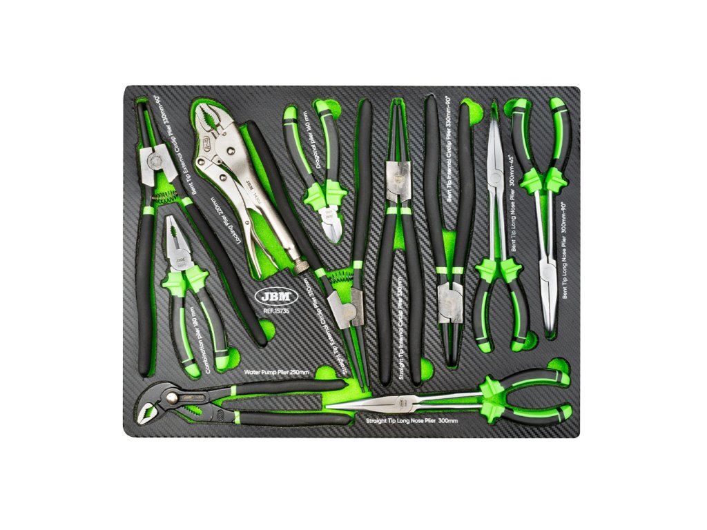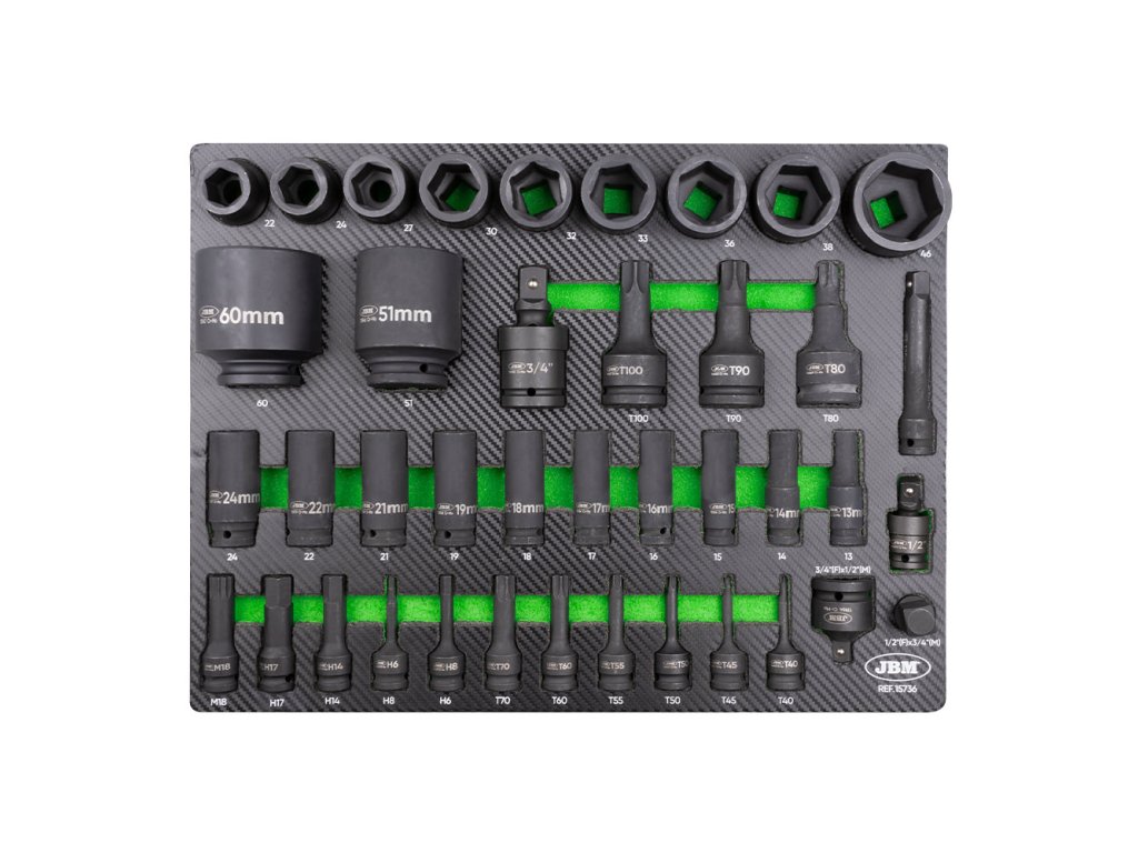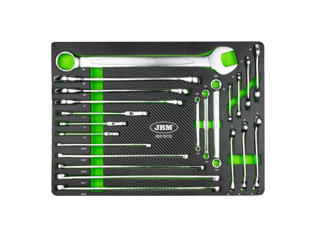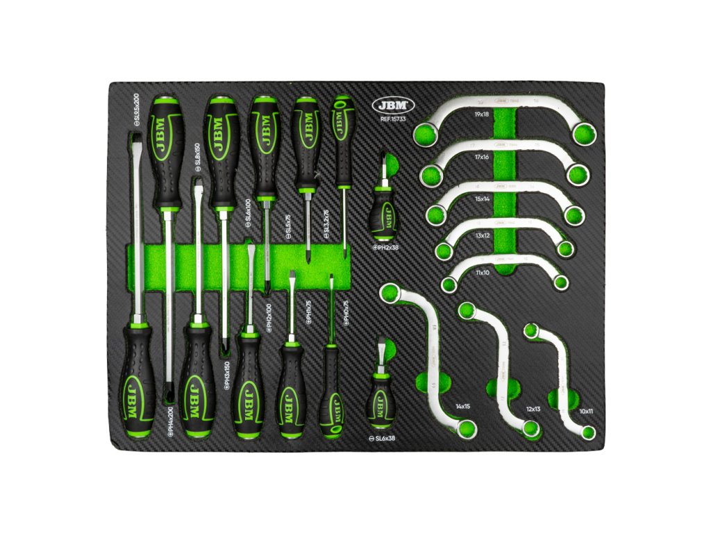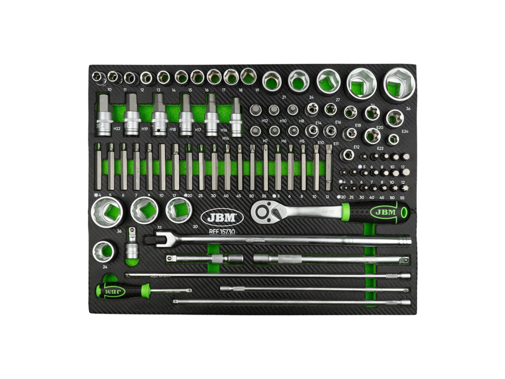 Náradie je uložené v moduloch vyplnených penou EVA s presnými výrezmi pre každé náradie.