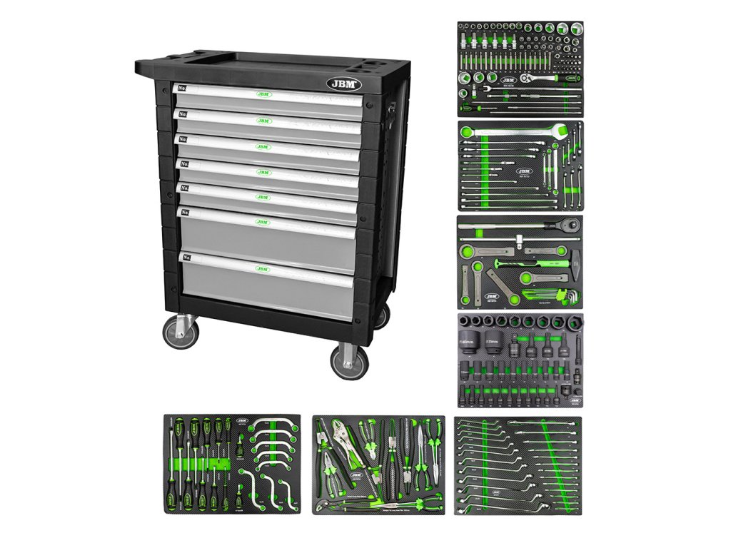 Dielenský vozík, vybavený, pre nákladné vozidlá (LKW), 7 zásuviek, 225 nástrojov - JBM