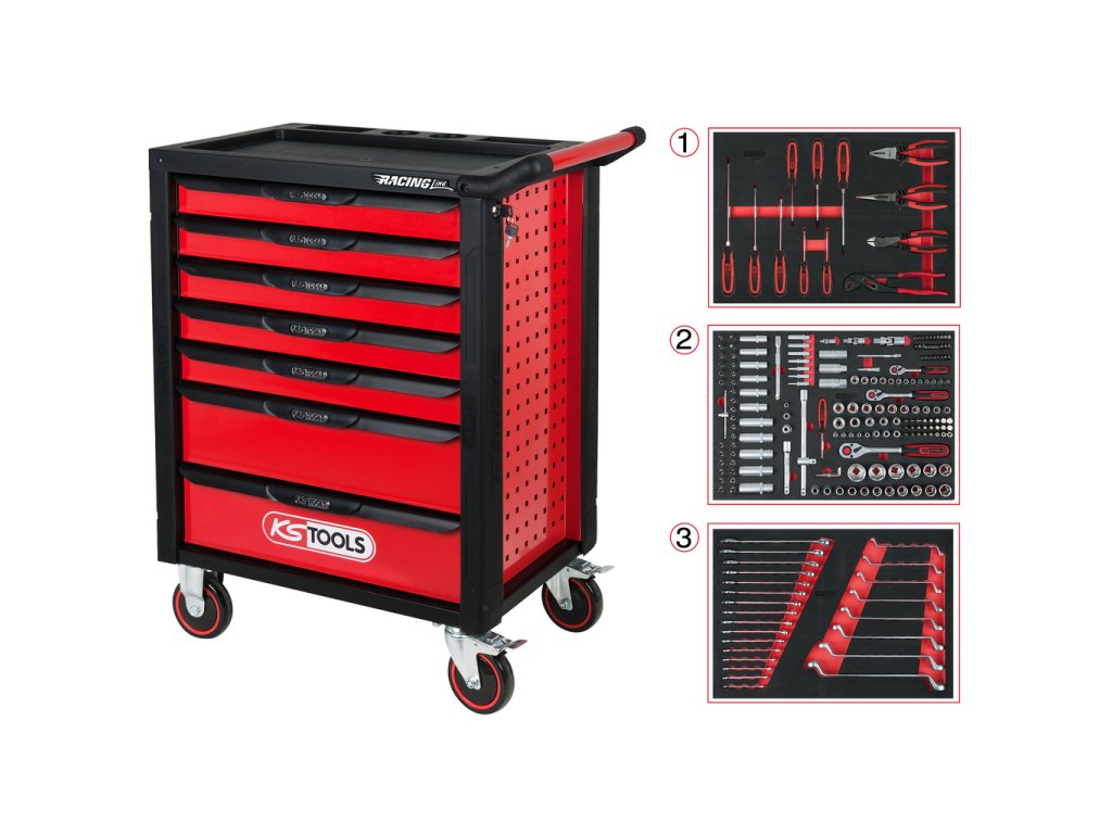 Dielenský vozík, vybavený, RACINGline, 7 zásuviek, 215 nástrojov - KS TOOLS 826.7215
