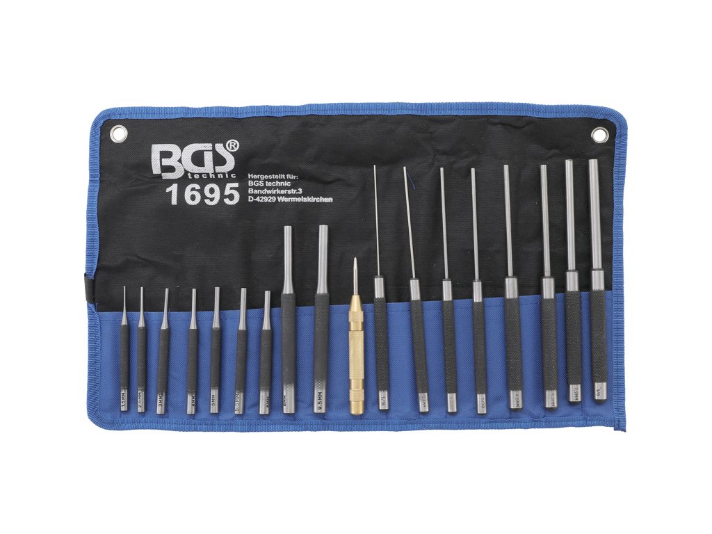 Dierovače 1,5-9,5 mm a automatický dierovač, sada 18 dielov - BGS 1695