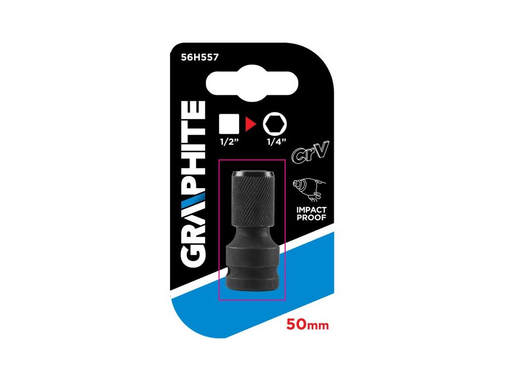 Impact - nárazový adaptér pre náradie s vodiacim štvorhranom 1/2", so šesťhranným otvorom 1/4" - grafit