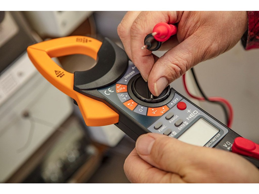 Skúšačka – multimeter s meracími kliešťami, s podsvieteným displejom a pamäťou výsledkov, s certifikátom, v plastovom puzdre – NEO tools 94-002