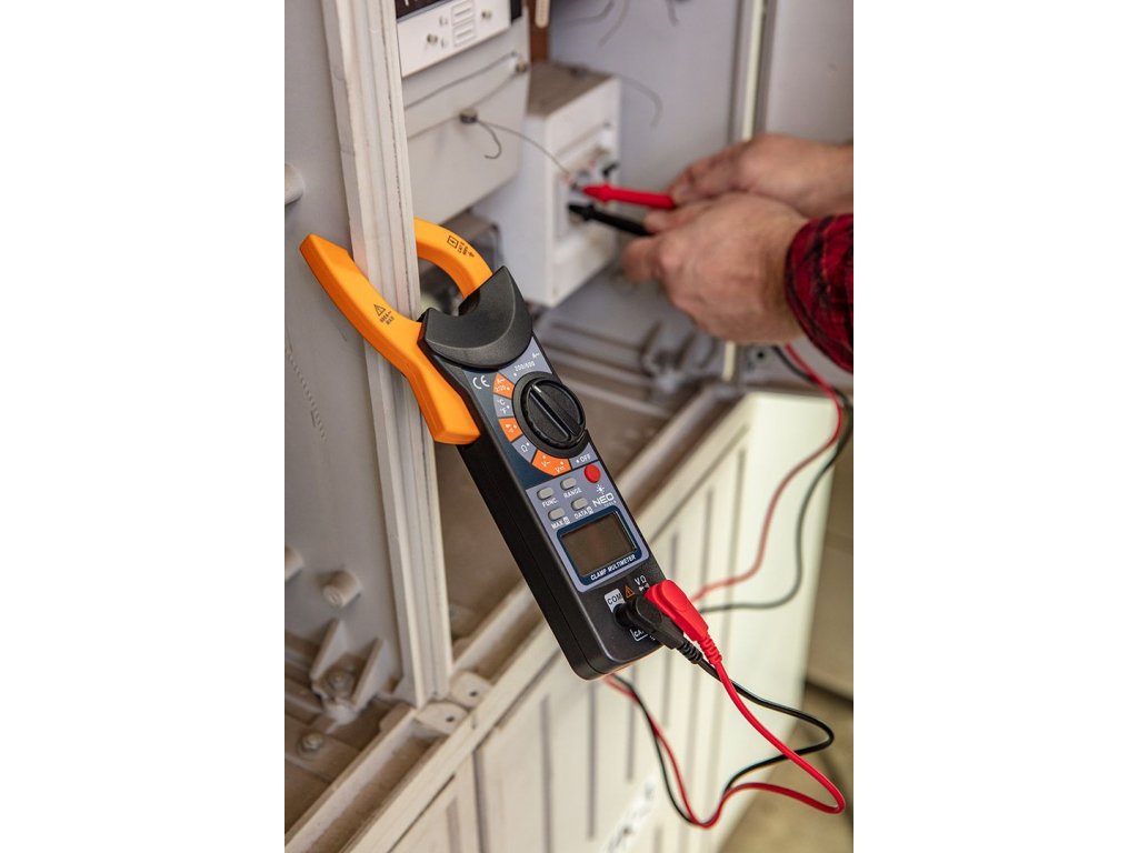 Moderný kliešťový multimeter na meranie jednosmerného a striedavého napätia, intenzity striedavého prúdu, elektrického odporu, teploty, na testovanie diód a na kontrolu kontinuity elektrických vodičov. Vyznačuje sa automatickými meracími rozsahmi a pamäťou na výsledky posledných meraní.