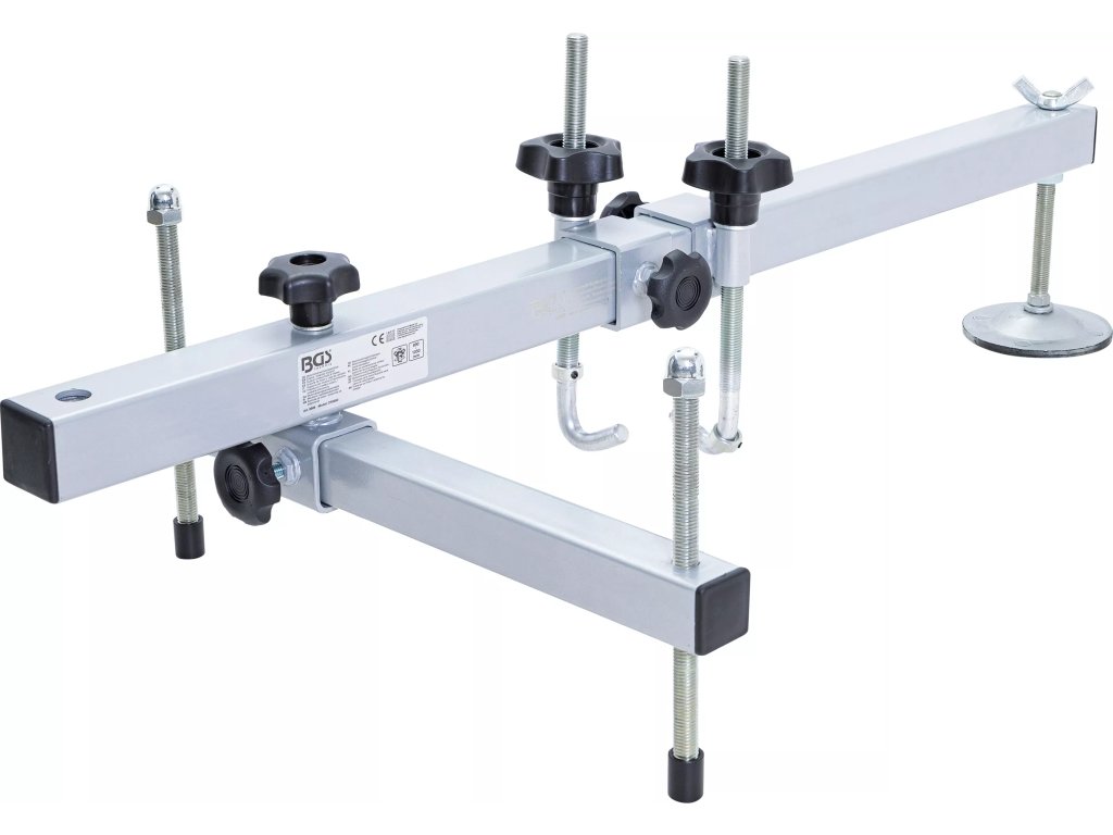 Technické údaje: Je potrebné napríklad Demontáž motora montáž, rozvodový remeň a výmena spojky - Robustný 4-square-trubka konštrukcie - Podpora nohy a nosná doska výškovo nastaviteľné a možno zamknúť Nastaviteľný otočný poistný hák a výšky ručným okolo - - Pohyblivá a uzamykateľný priečny nosník a udržať háčik - Brúsny tanier s protišmykovou gumovou podložkou - Zvlášť vhodné pre montáž motorových most je pri vysokom uhle nábehu krídla, v ktorej veľmi ťažké - Používa sa na mnohých vozidlách - Dĺžka pozdĺžneho nosníka: 690-1050 mm - Max. Poistný hák rozteč: 500 mm